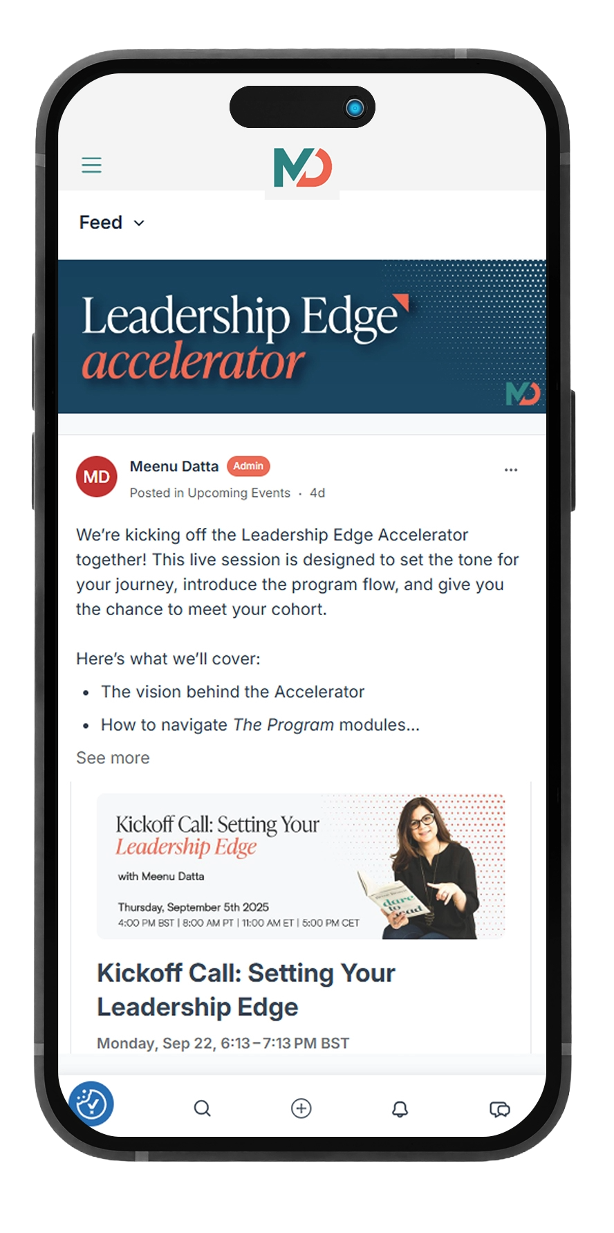 The Leadership Edge Accelerator isn’t about more hard work. It’s about uncovering the patterns you can’t see alone and removing what’s in the way.